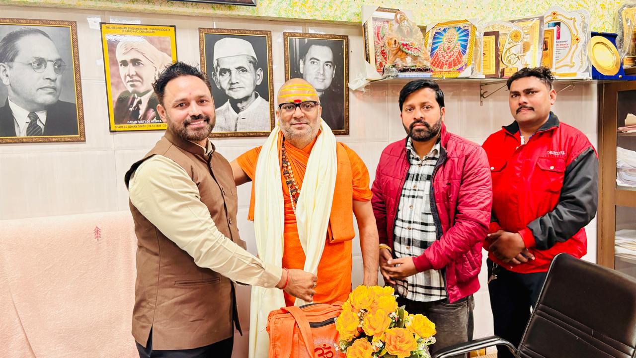 नवनियुक्त सनातन धर्म परिषद, उत्तर प्रदेश के अध्यक्ष (कैबिनेट मंत्री दर्जा प्राप्त) एवं नृसिंह पीठाधीश्वर स्वामी रसिक महाराज का चंडीगढ़ सेक्टर 42 में आगमन पर कांग्रेस नेता एवं सीनियर डिप्टी मेयर जसवीर सिंह बंटी ने पुष्प गुच्छ एवं शाल भेंट कर उनका गर्मजोशी से स्वागत किया।