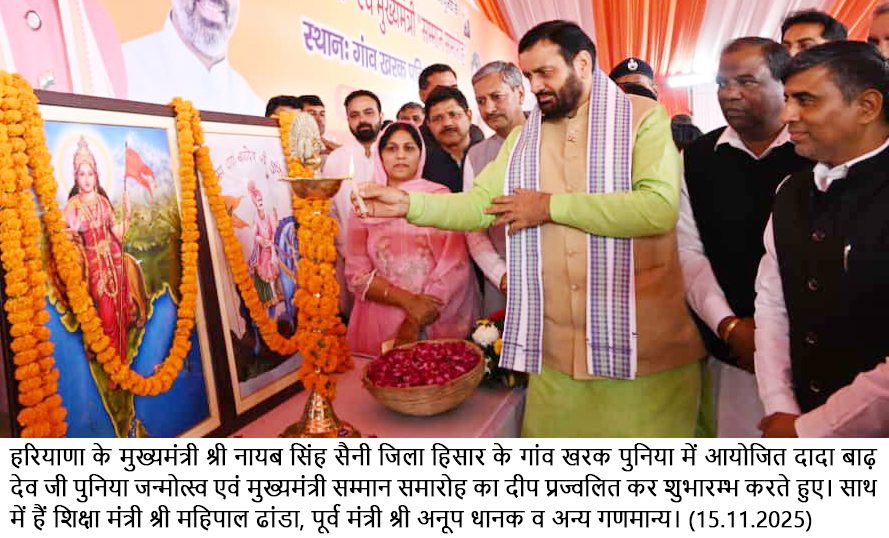मुख्यमंत्री आज यात्रा जिले के खरक पूनिया गांव में पूरे हरियाणा में सर्वजातीय पूनिया समाज द्वारा दादाजी के जन्मदिन पर आयोजित भव्य कार्यक्रम को संबोधित कर रहे थे।