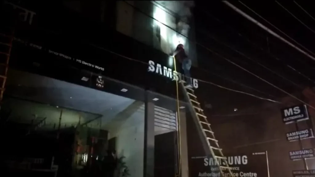 सर्विस सेंटर के मालिक बालकृष्ण सैनी ने बताया कि उन्होंने सीसीटीवी फुटेज में देखा कि दो युवक बाइक पर आए थे। उनमें से एक युवक बाइक से उतरकर गेट के बाहर कोई विस्फोटक वस्तु रख गया और आग लगाने के बाद दोनों फरार हो गए।