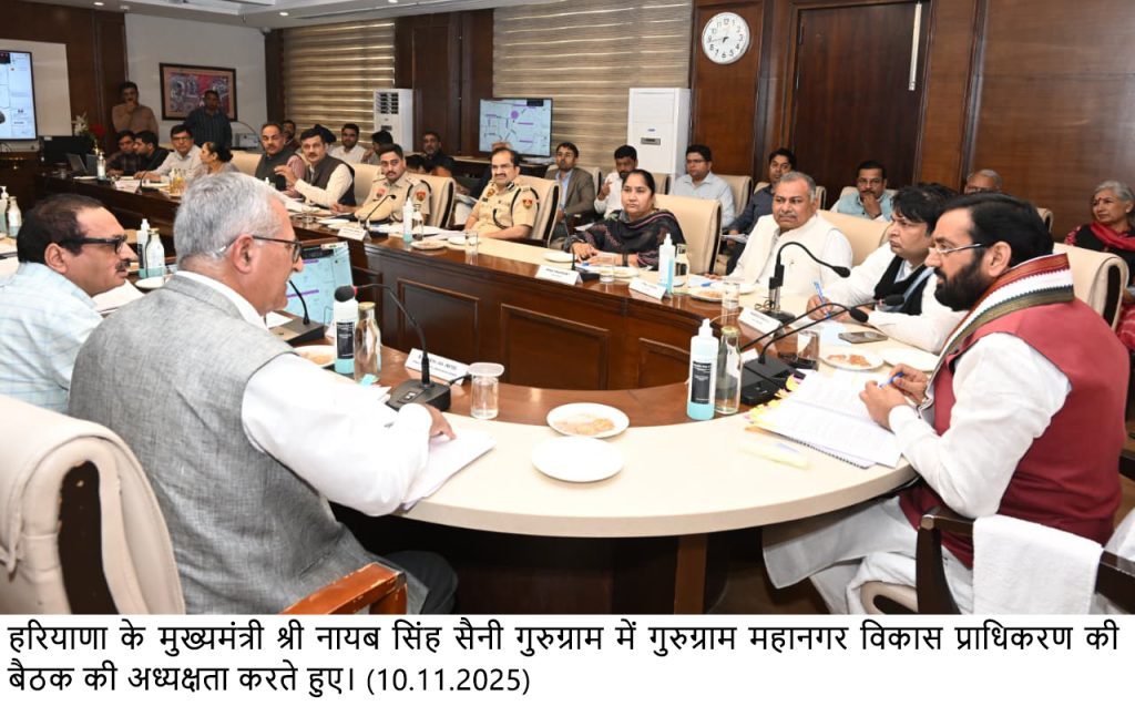 चंडीगढ़, 10 नवंबर — मुख्यमंत्री नायब सिंह सैनी ने कहा कि राज्य सरकार गुरुग्राम को जाम मुक्त और सुगम यातायात वाला शहर बनाने के लिए पूरी तरह प्रतिबद्ध है। सोमवार को उन्होंने गुरुग्राम महानगर विकास प्राधिकरण (जीएमडीए) की 15वीं बैठक की अध्यक्षता करते हुए शहर में चल रहे विकास कार्यों और इंफ्रास्ट्रक्चर परियोजनाओं की प्रगति की समीक्षा की।