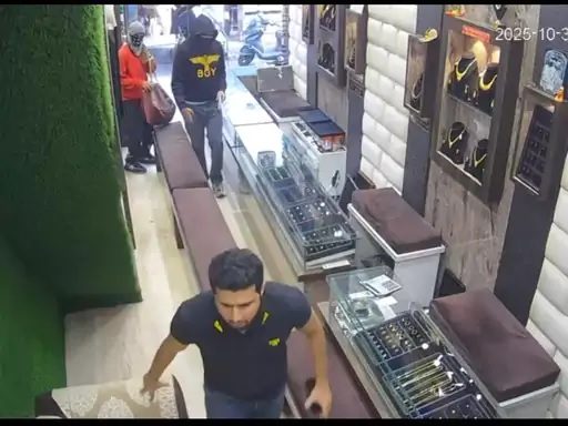 लूट की यह पूरी वारदात दुकान में लगे सीसीटीवी कैमरे में कैद हो गई है। घटना की सूचना मिलते ही भार्गव कैंप थाना पुलिस मौके पर पहुंची और मामले की जांच शुरू कर दी है। पुलिस सीसीटीवी फुटेज खंगाल रही है। दुकान की सीसीटीवी फुटेज से लुटेरों की पहचान की जा रही है। तीन लुटेरे मुंह ढंककर दुकान के अंदर घुसे 3 लुटेरे पिस्तौल और हथियार लेकर दुकान में घुस जाते हैं। इसके बाद दुकान मालिक का बेटा घबरा जाता है और चिल्लाने लग जाता है। इस दौरान दुकान मालिक के बेटे ने शोर भी मचाया। इसके बाद एक लुटेरे ने तेजधार हथियार से दुकान के काउंटर का शीशा तोड़ दिया।