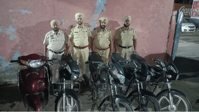 जालंधर में सीआईए स्टाफ देहात पुलिस ने दो वाहन चोरों को गिरफ्तार किया है। आरोपियों के पास से चोरी की चार मोटरसाइकिलें और एक एक्टिवा बरामद की गई हैं। पुलिस ने आदमपुर में नाकाबंदी के दौरान इन युवकों को पकड़ा जिन्होंने भागने की कोशिश की थी। आरोपियों के खिलाफ मामला दर्ज कर पुलिस रिमांड पर लिया गया है। दोनों युवक अलग-अलग मोटरसाइकिलों पर सवार होकर रामा मंडी की तरफ से आ रहे थे। पुलिस नाका देखकर उन्होंने भागने की कोशिश की, लेकिन मोटरसाइकिल बंद हो जाने पर उन्हें पकड़ लिया गया।